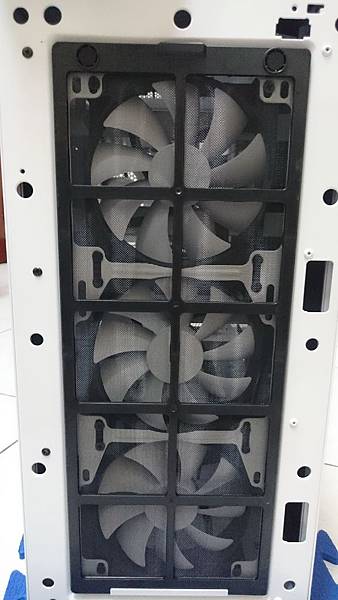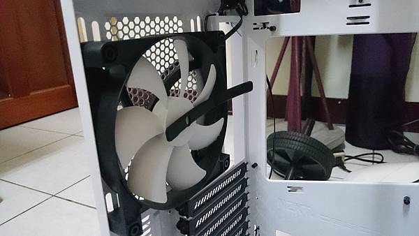 圖九 後140mm 風扇 用硬碟架防震膠條固定 記得拔下來黏回去硬碟架